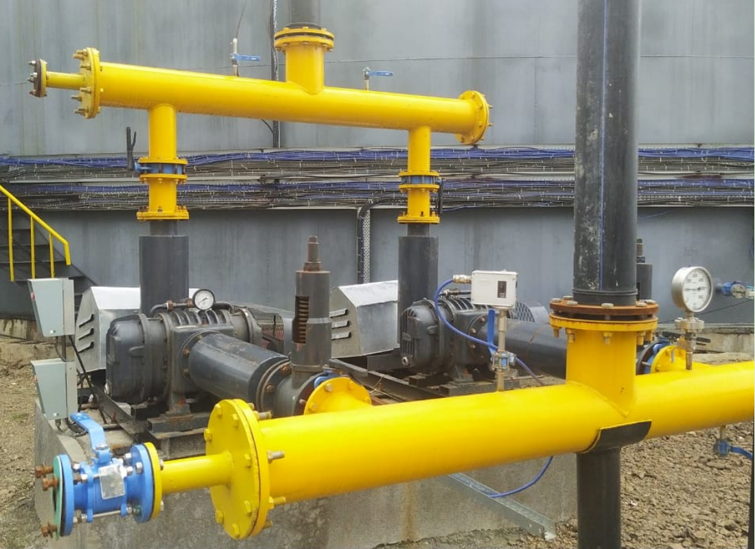 The BioGas from the ballons is being fed into Gas Blowers at lower pressure of approx. 15 to 50 mmwc and then Biogas Blowers increased pressure and send to H2S Cleaning System.