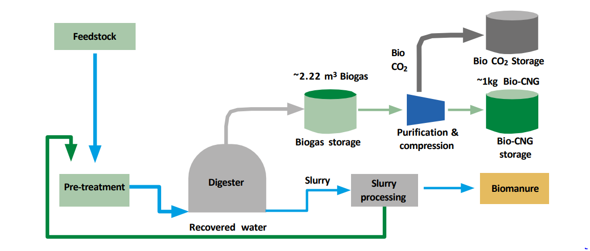 CBG generation involves four key steps, namely feedstock pretreatment, anaerobic digestion, biogas purification and compression.