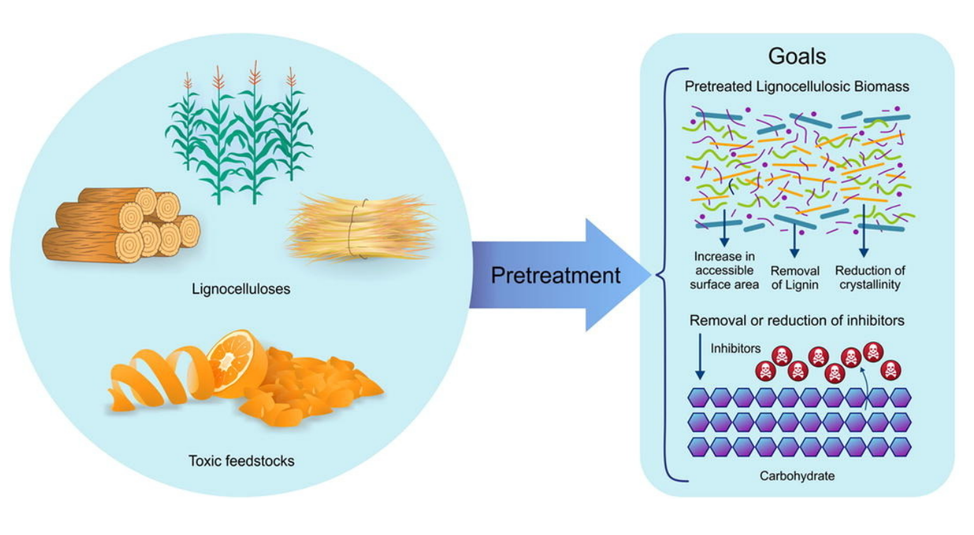 One significant problem with certain types of feedstocks is that they are difficult for microorganisms to break down, or the process of breaking them down is extremely slow. In such cases, pre-treatment methods can be used to eliminate inhibitory compounds and